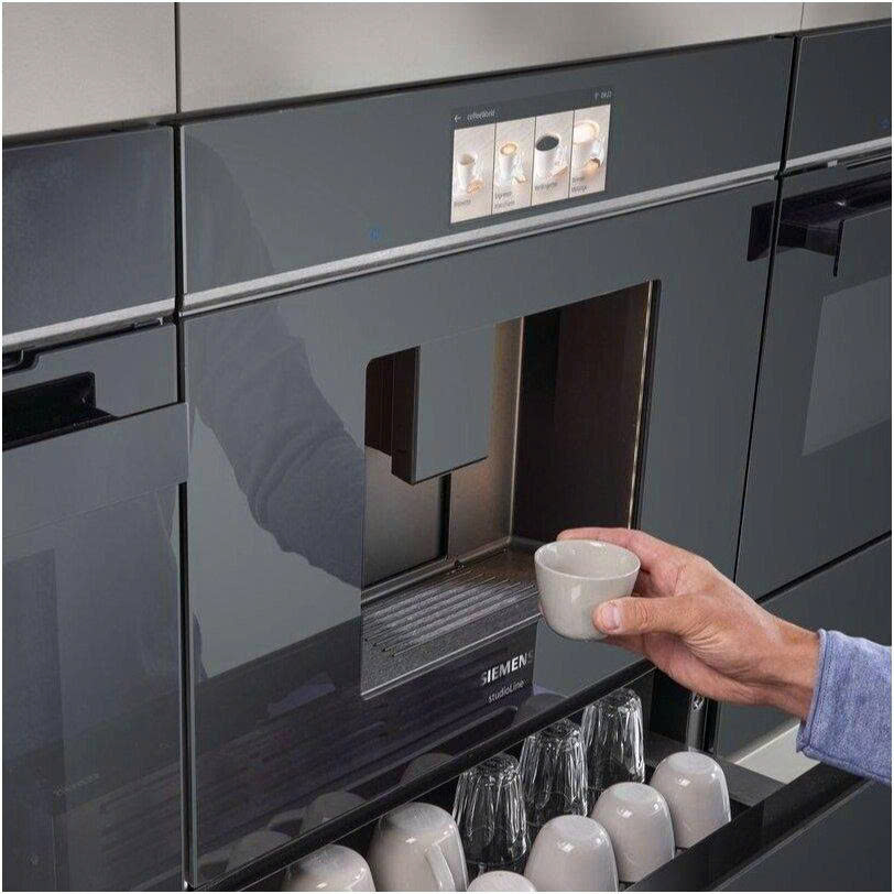 Máy Pha Cà Phê Tự Động Siemens CT918L1B0 tự tin để mang lại vẻ đẹp hiện đại, cao cấp cho mọi không gian với lớp hoàn thiện thép không gỉ đen bóng cùng thiết kế âm tủ liền mạch. Thiết kế của máy pha cà phê đến từ Siemens không chỉ tiết kiệm được không gian mà con đem lại một vẻ sang trọng, thoáng đạt, tạo cái nhìn hiện đại về toàn bộ thẩm mỹ của không gian lắp đặt.